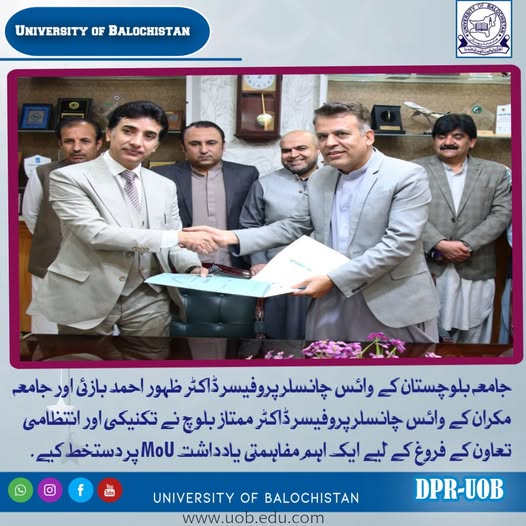 A cooperation agreement was signed between the University of Balochistan and Pakistan Baitul Mal