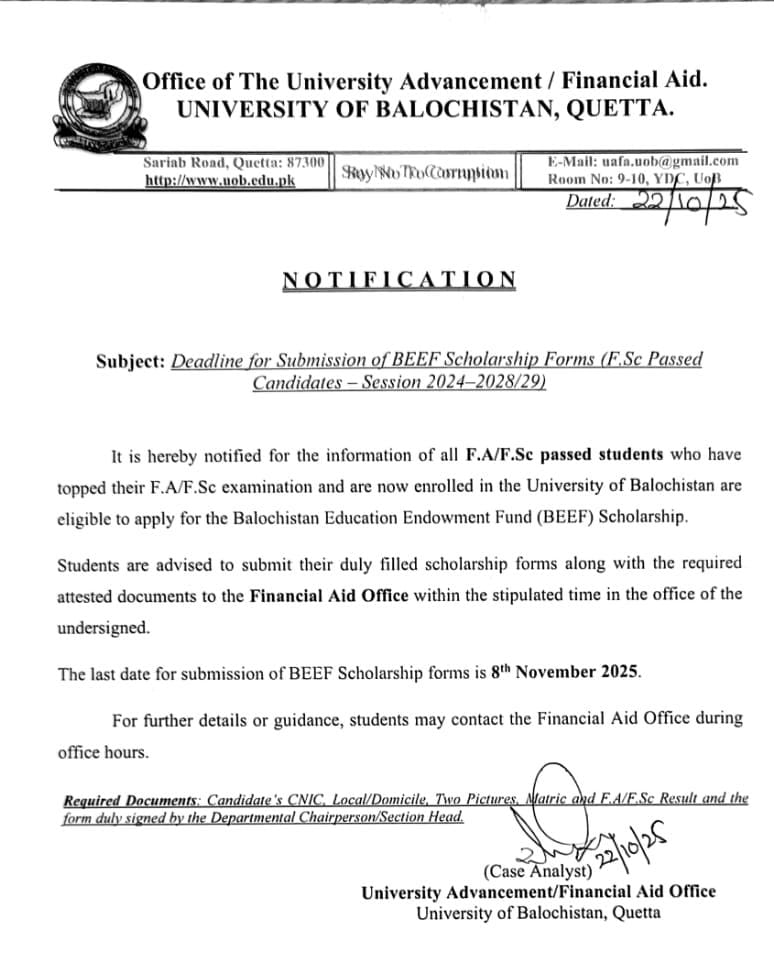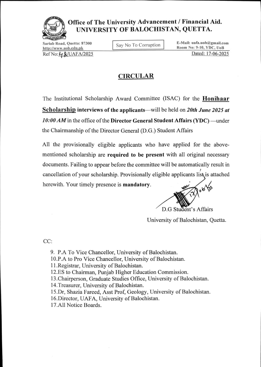 π’ PM Laptop Scheme Phase IV: Mandatory Requirements for Selected Students - University of Balochistan β