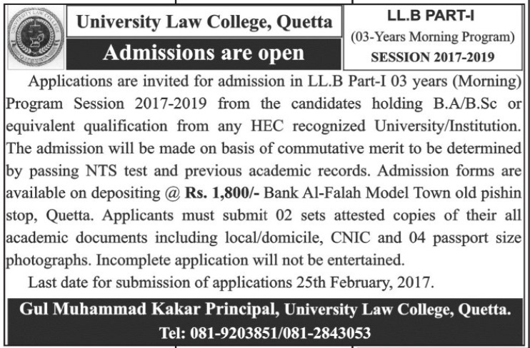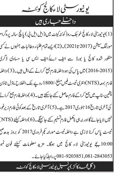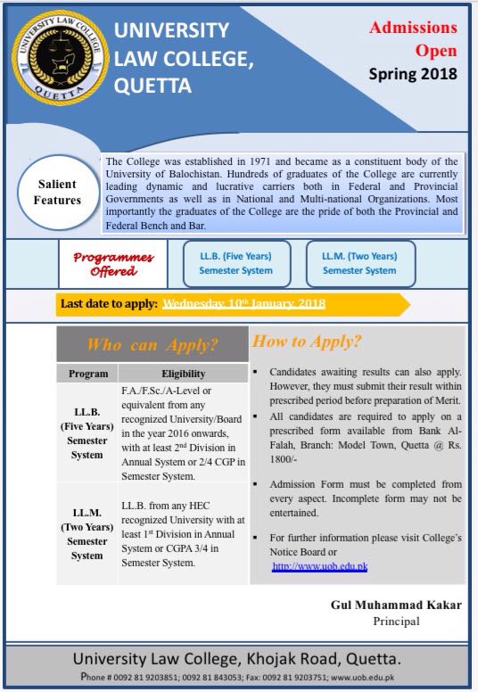 Admission open in Law College (LLB 3 Years Program (Morning))