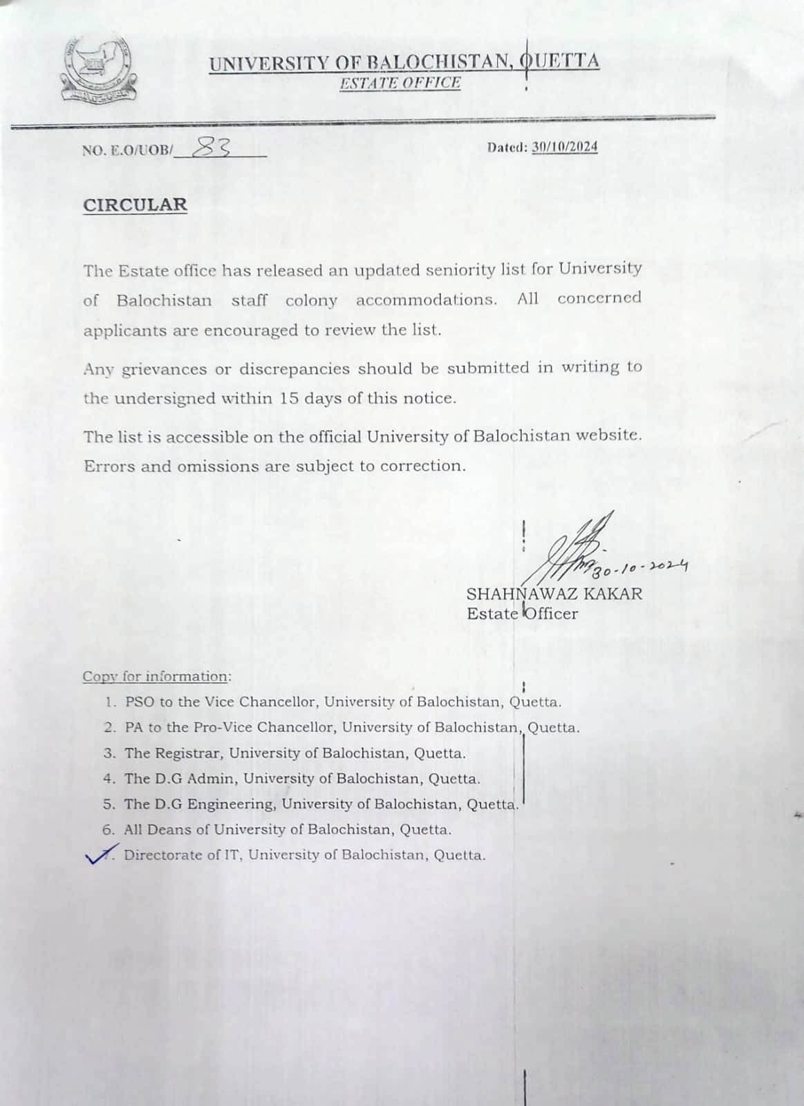 Estate Office Circular