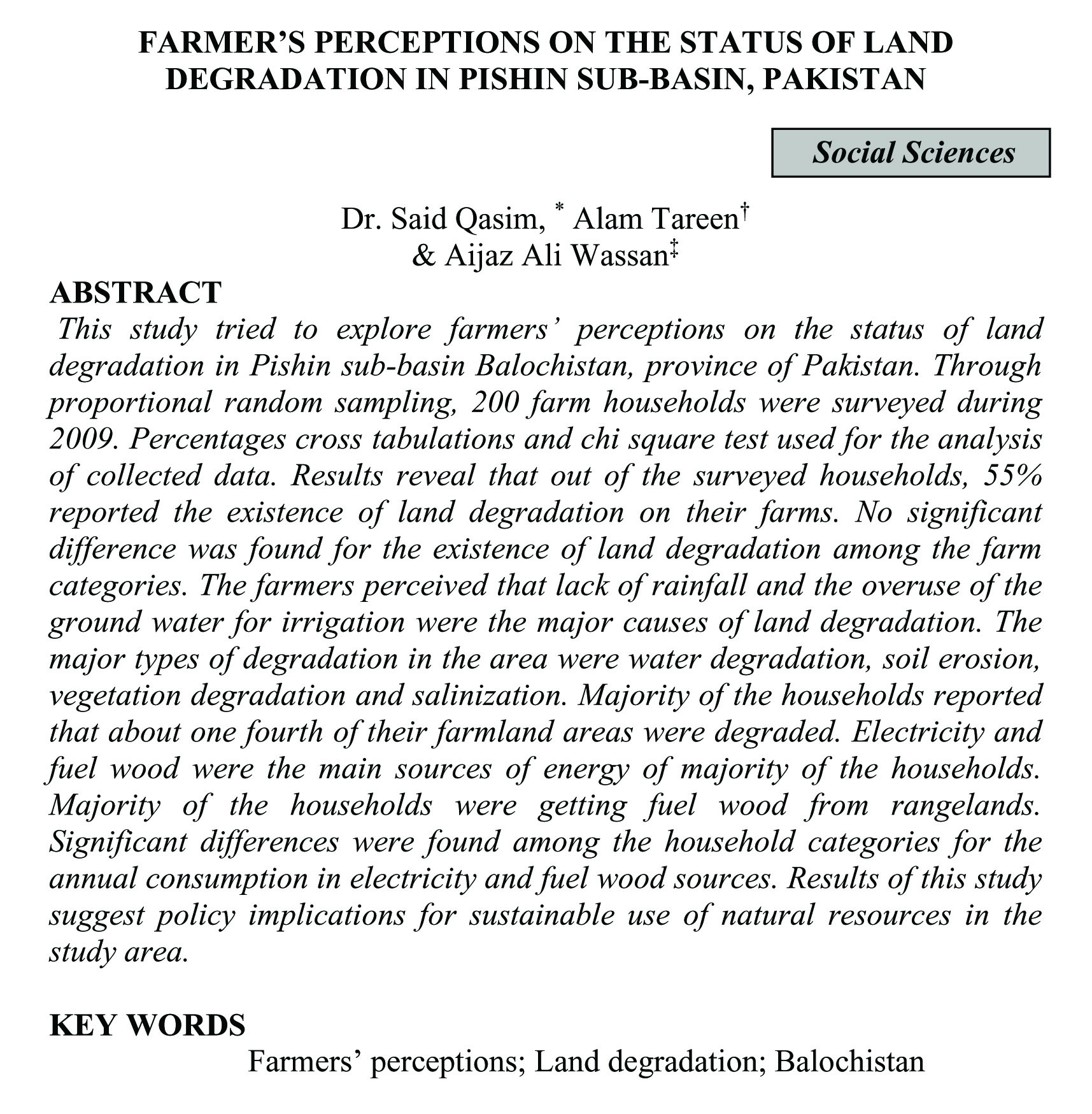 FARMER'S PERCEPTIONS ON THE STATUS OF LAND DEGRADATION IN PISHIN SUB-BASIN, PAKISTAN (abstract)