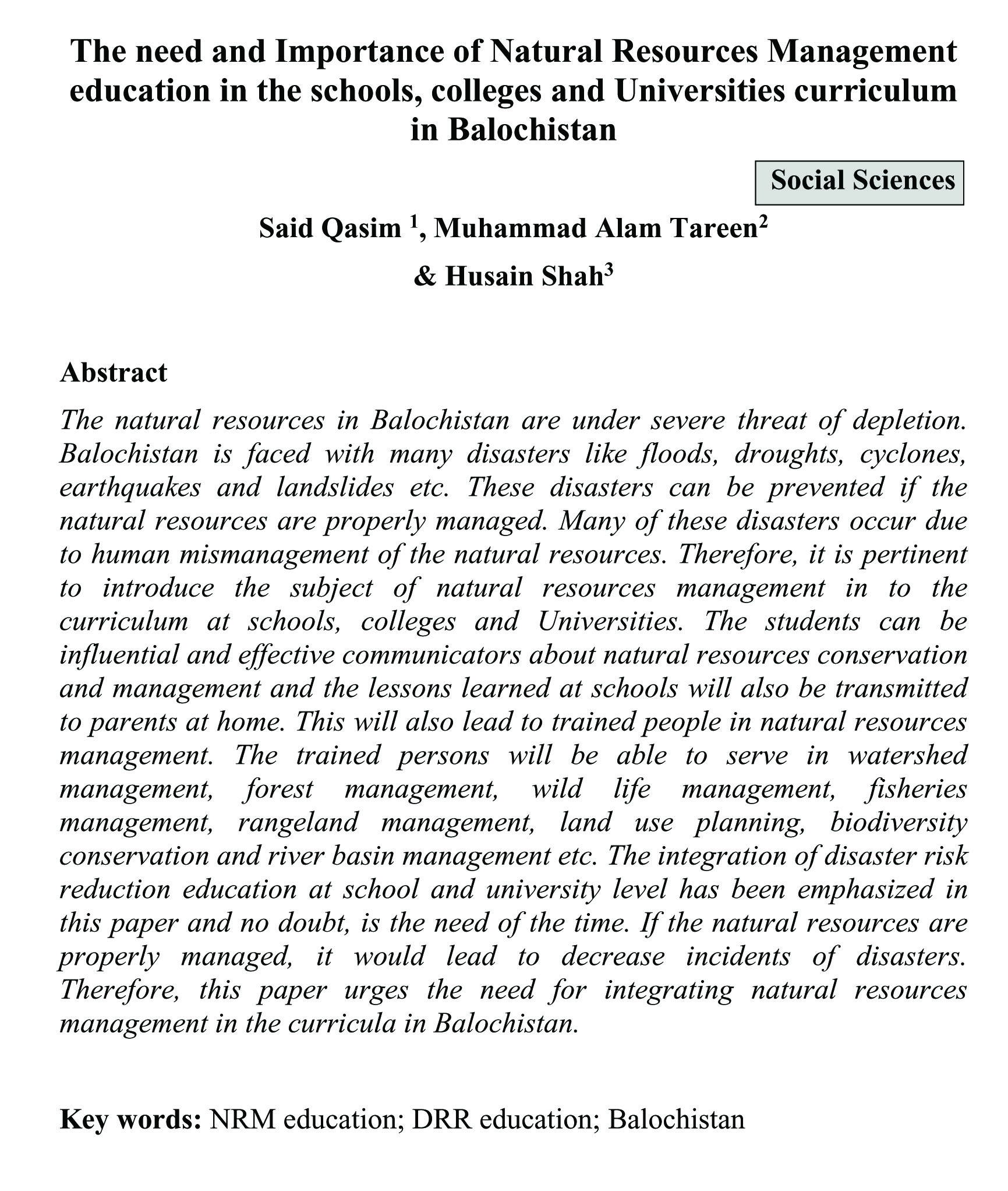 The need and Importance of Natural Resources Management education in the
