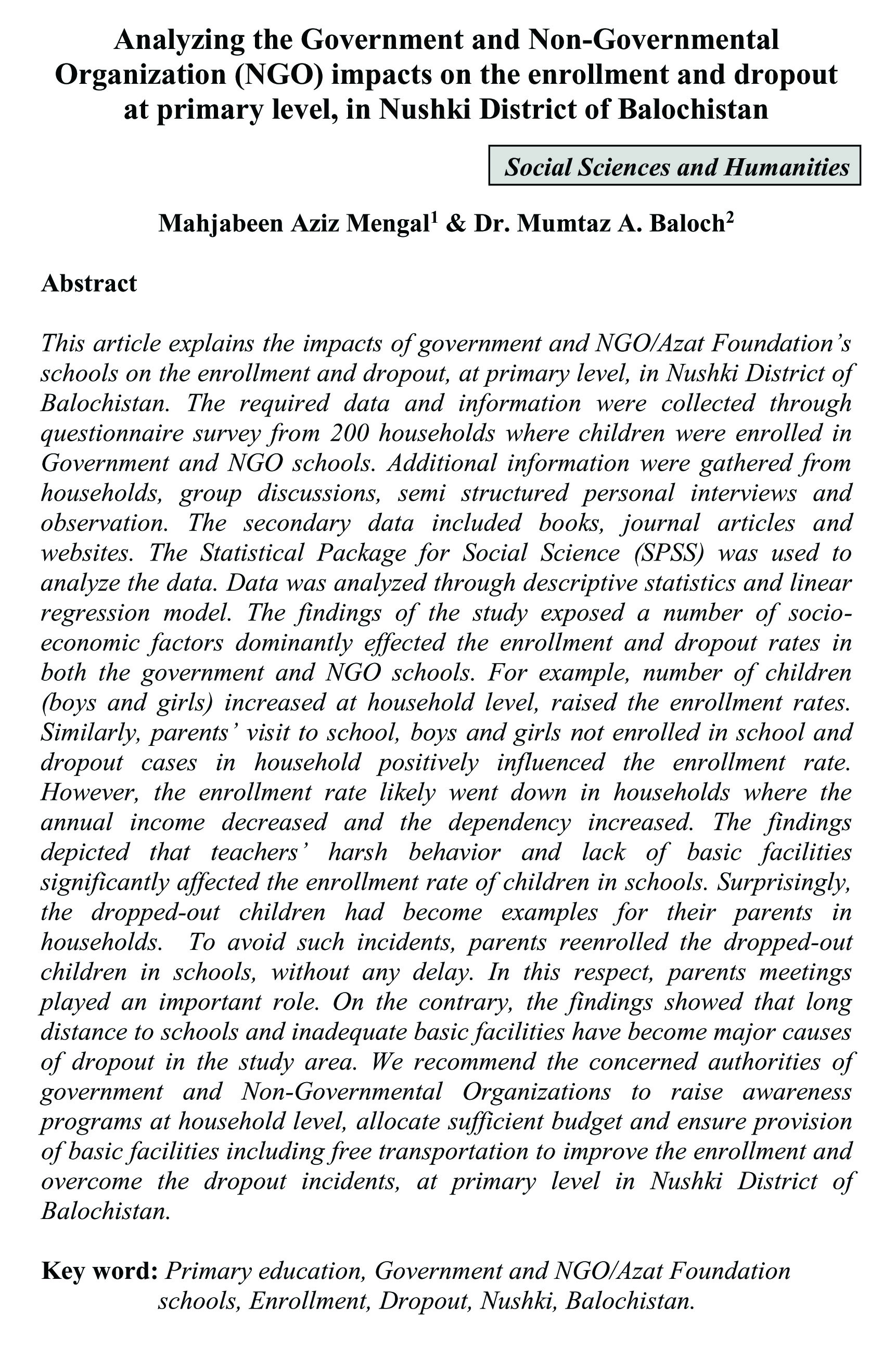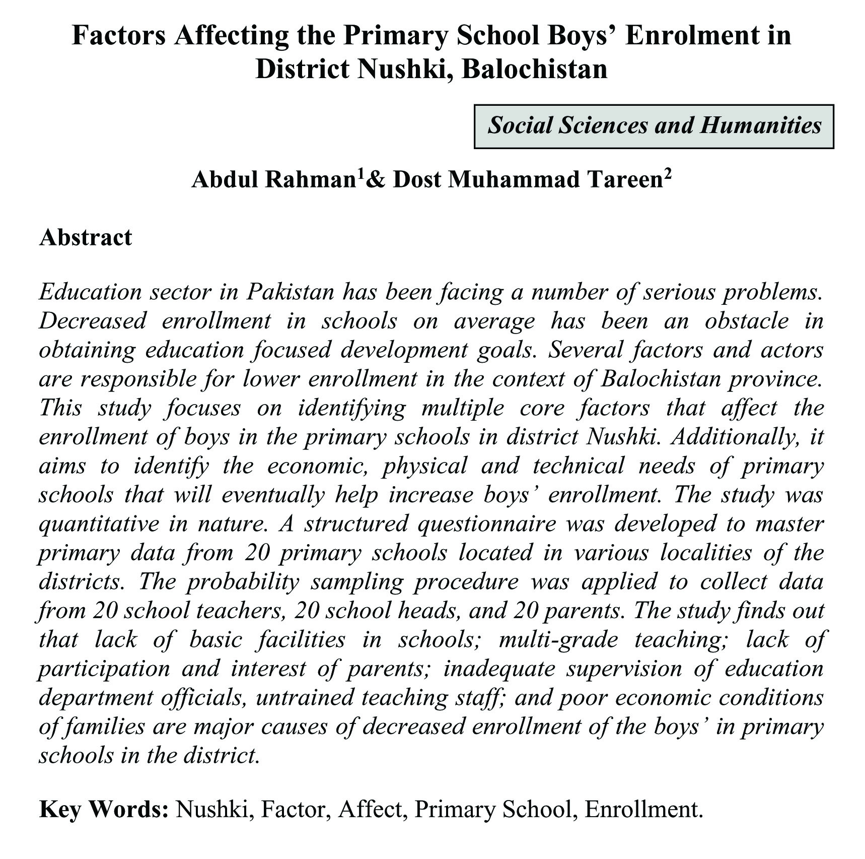 Factors Affecting the Primary School Boys' Enrolment in District Nushki, Balochistan (abstract)