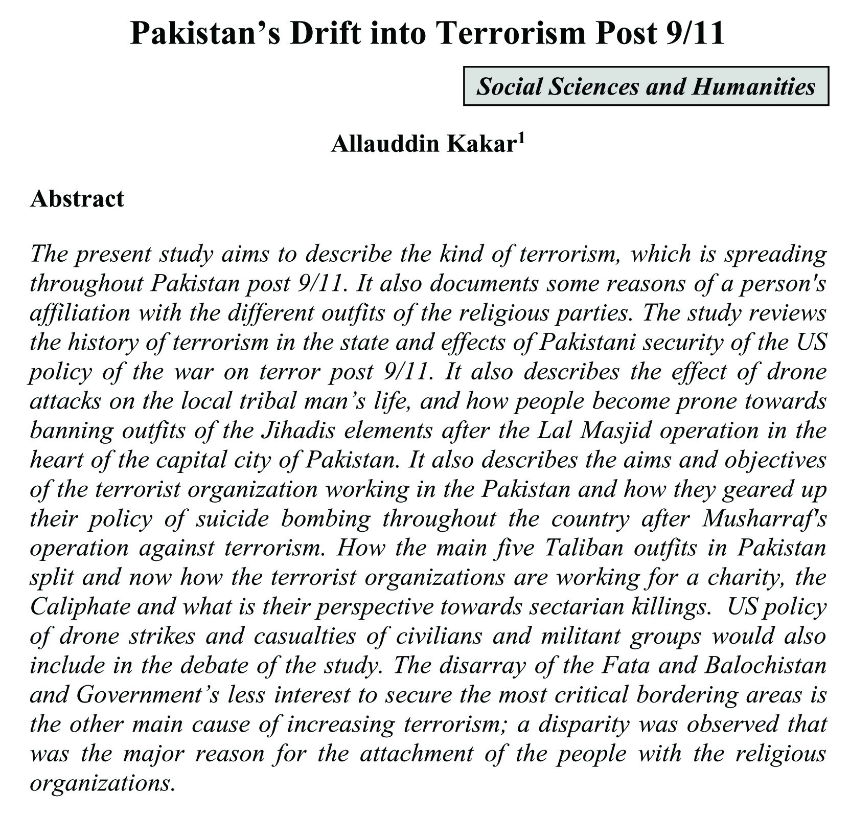 Pakistan's Drift into Terrorism Post 9/11 (abstract)