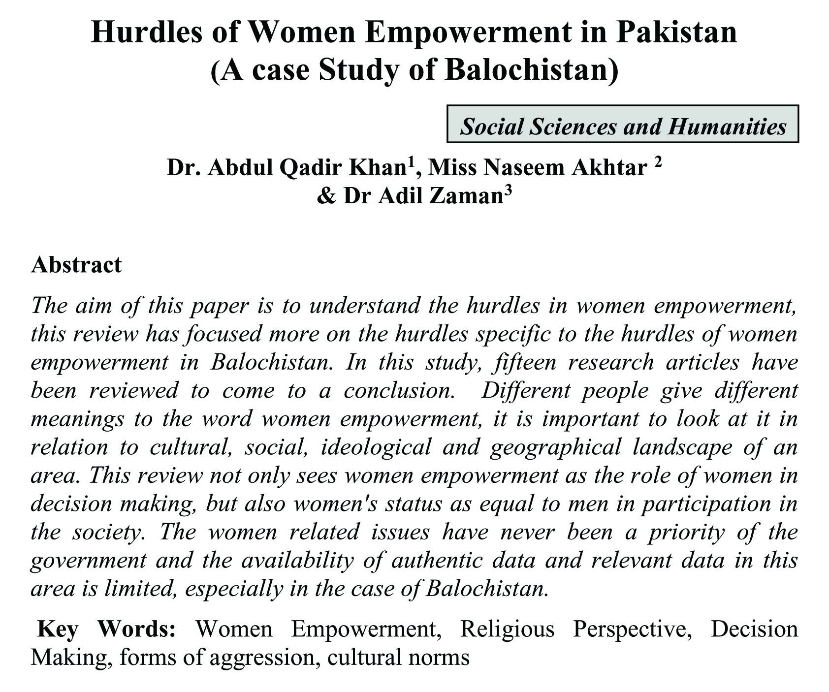 Hurdles of Women Empowerment in Pakistan (A case Study of Balochistan) (abstract)