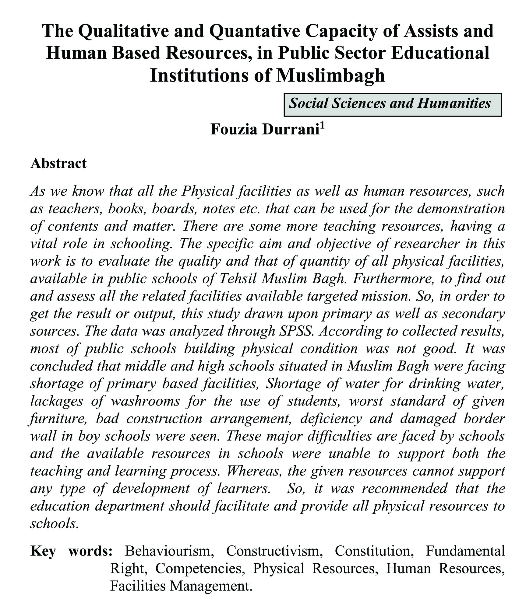 The Qualitative and Quantative Capacity of Assists and Human Based Resources, in Public Sector Educational Institutions of Muslimbagh (abstract)