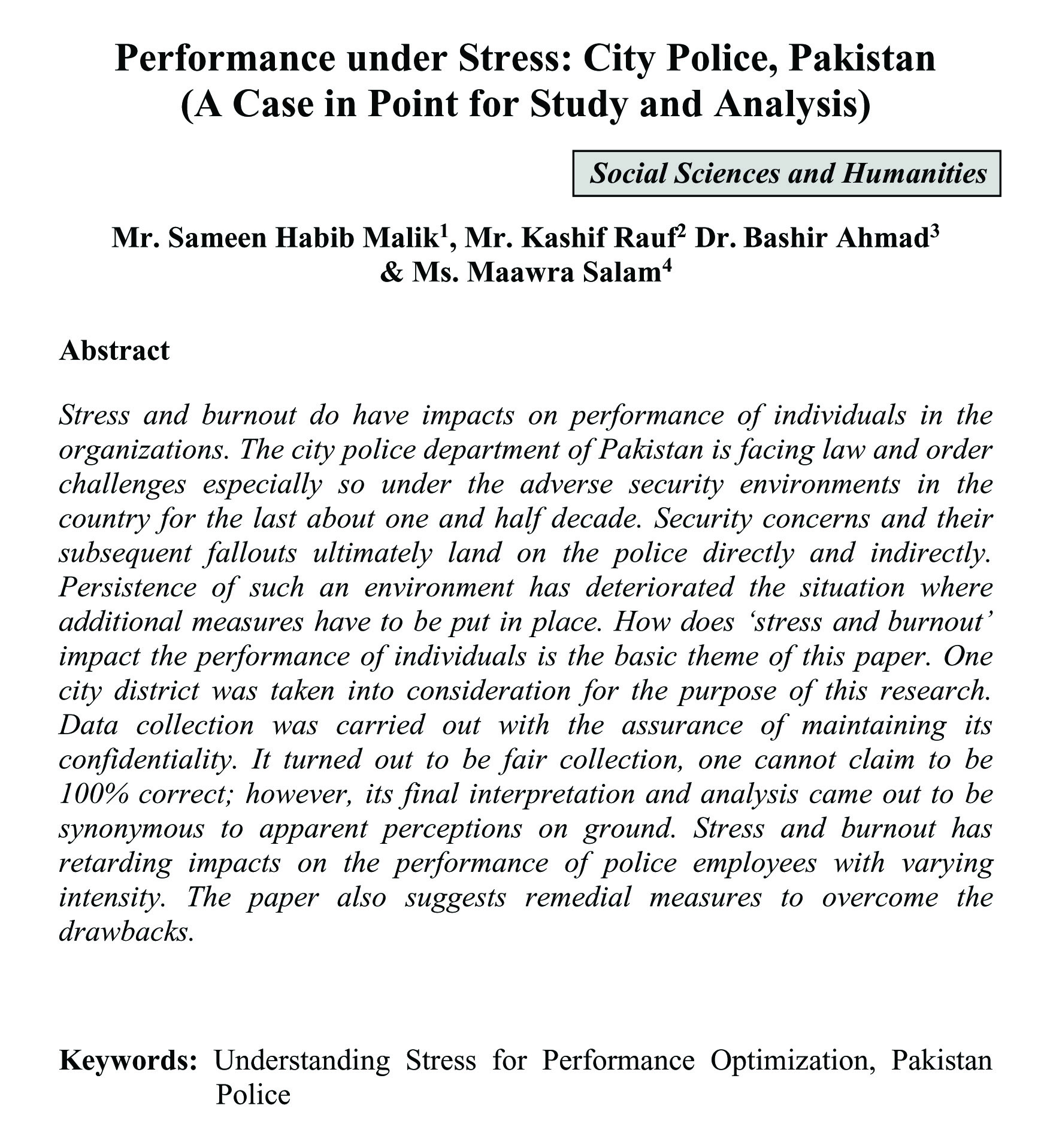 Performance under Stress: City Police, Pakistan (A Case in Point for Study and Analysis) (abstract)
