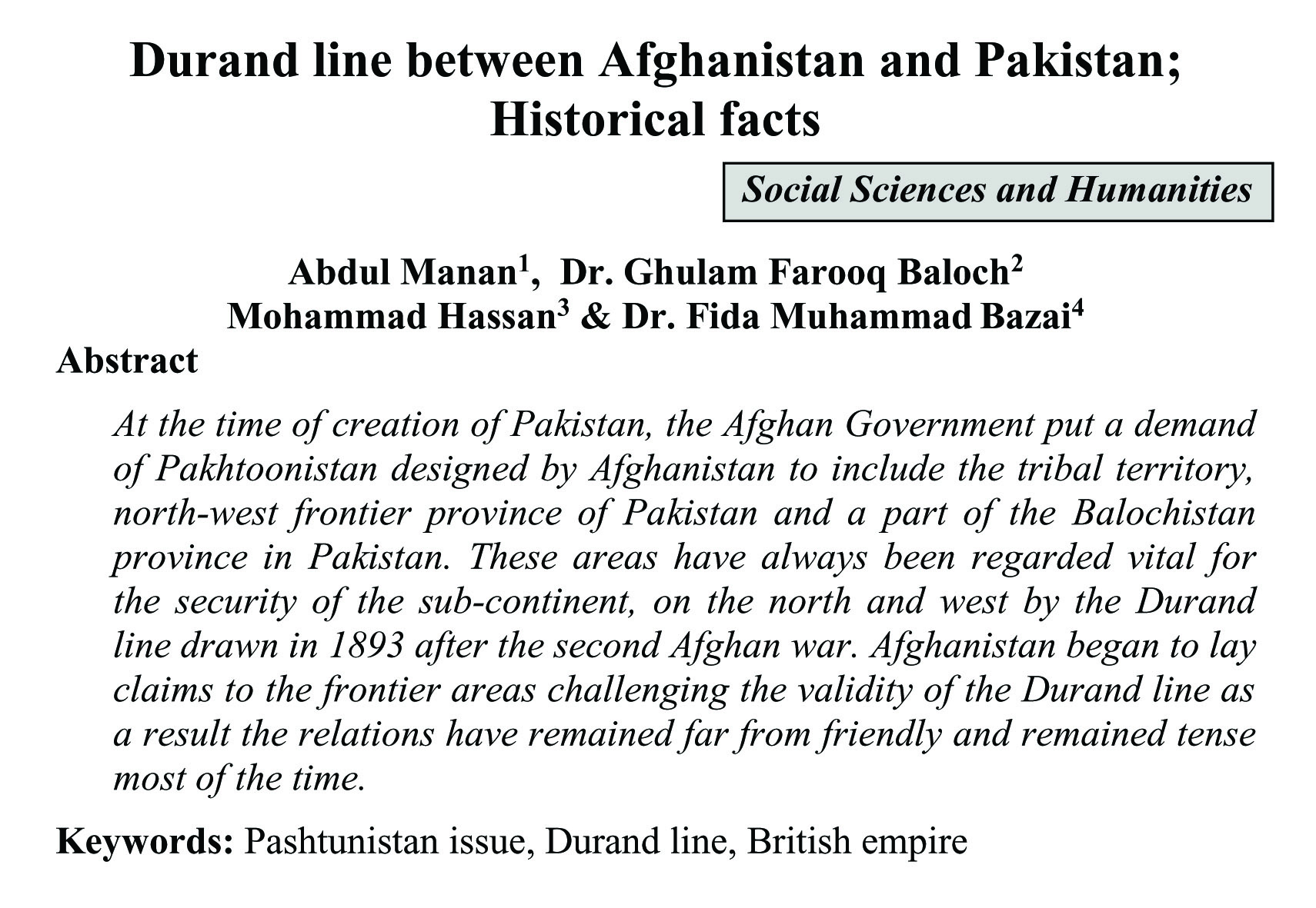 Durand line between Afghanistan and Pakistan; Historical facts (abstract)
