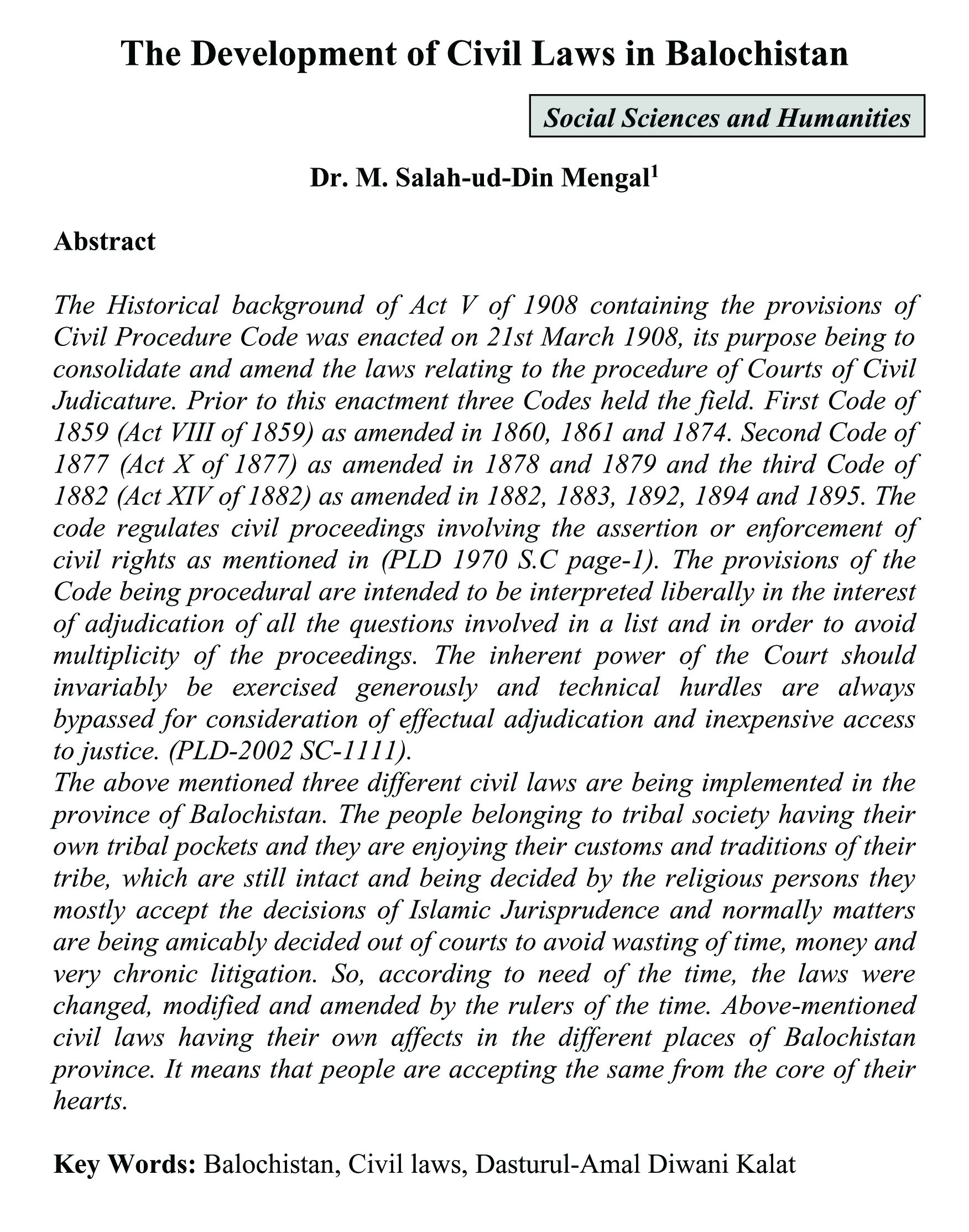 The Development of Civil Laws in Balochistan (abstract)