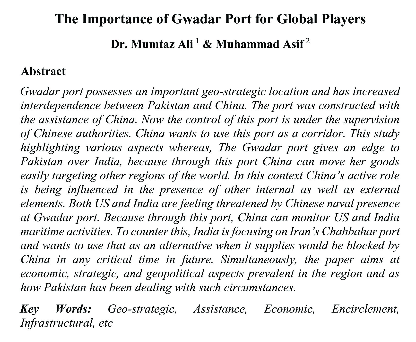The Importance of Gwadar Port for Global Players (abstract)