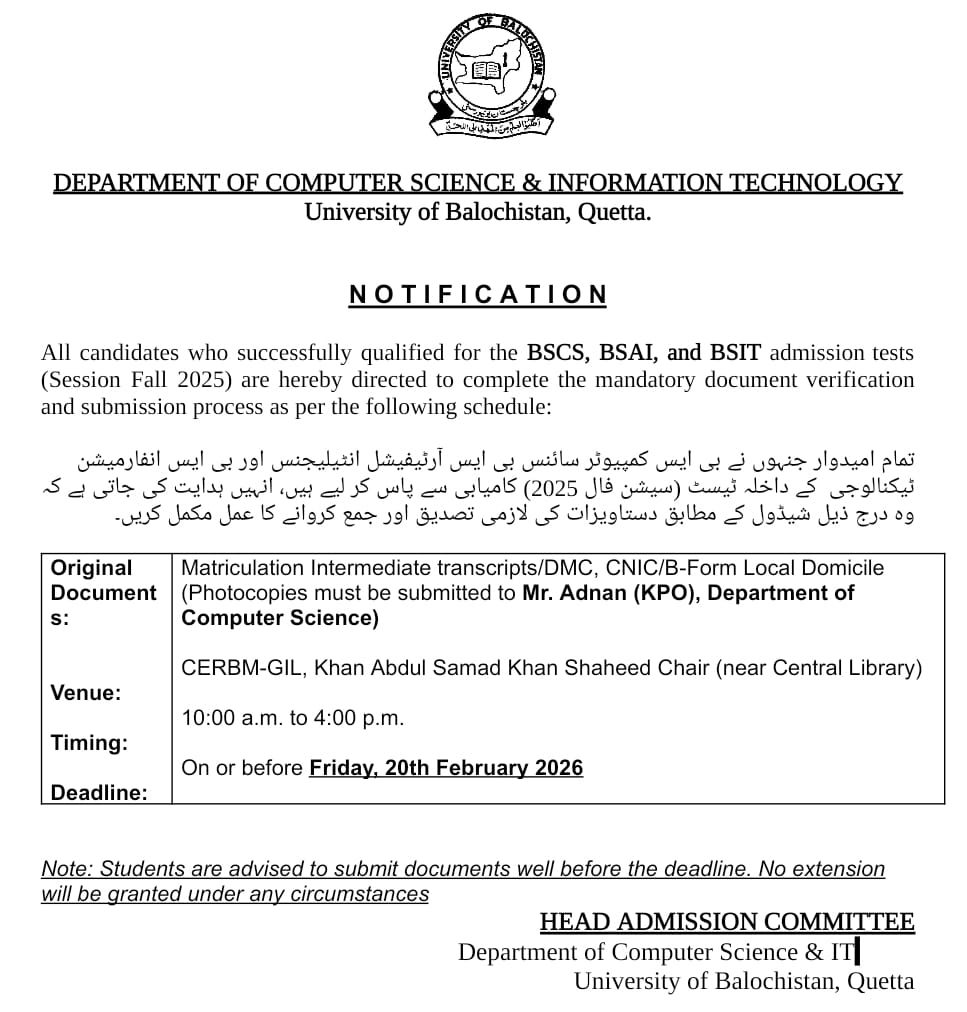 π’ PM Laptop Scheme Phase IV: Mandatory Requirements for Selected Students - University of Balochistan β