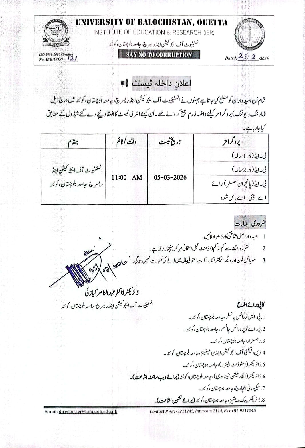π’ The University of Balochistan and it's all campuses except Kharan Campus will remain closed on account of winter vacations from 08-12-2025 to 03-03-2026. β