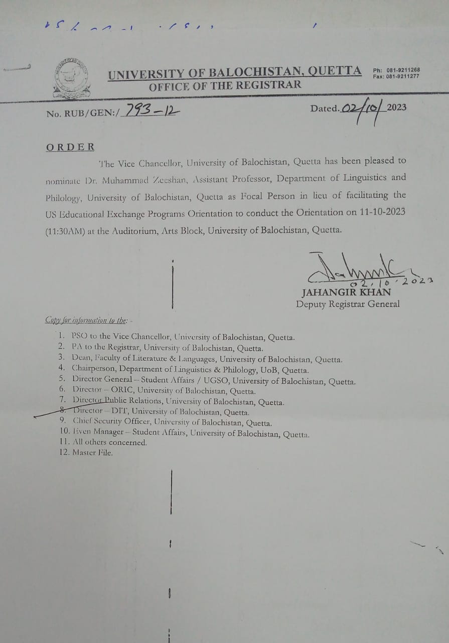 | Orientation on "US Educational Exchange program Orientation" at Auditorium (11-10-23, 11:30AM) |