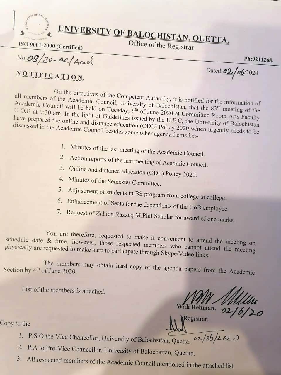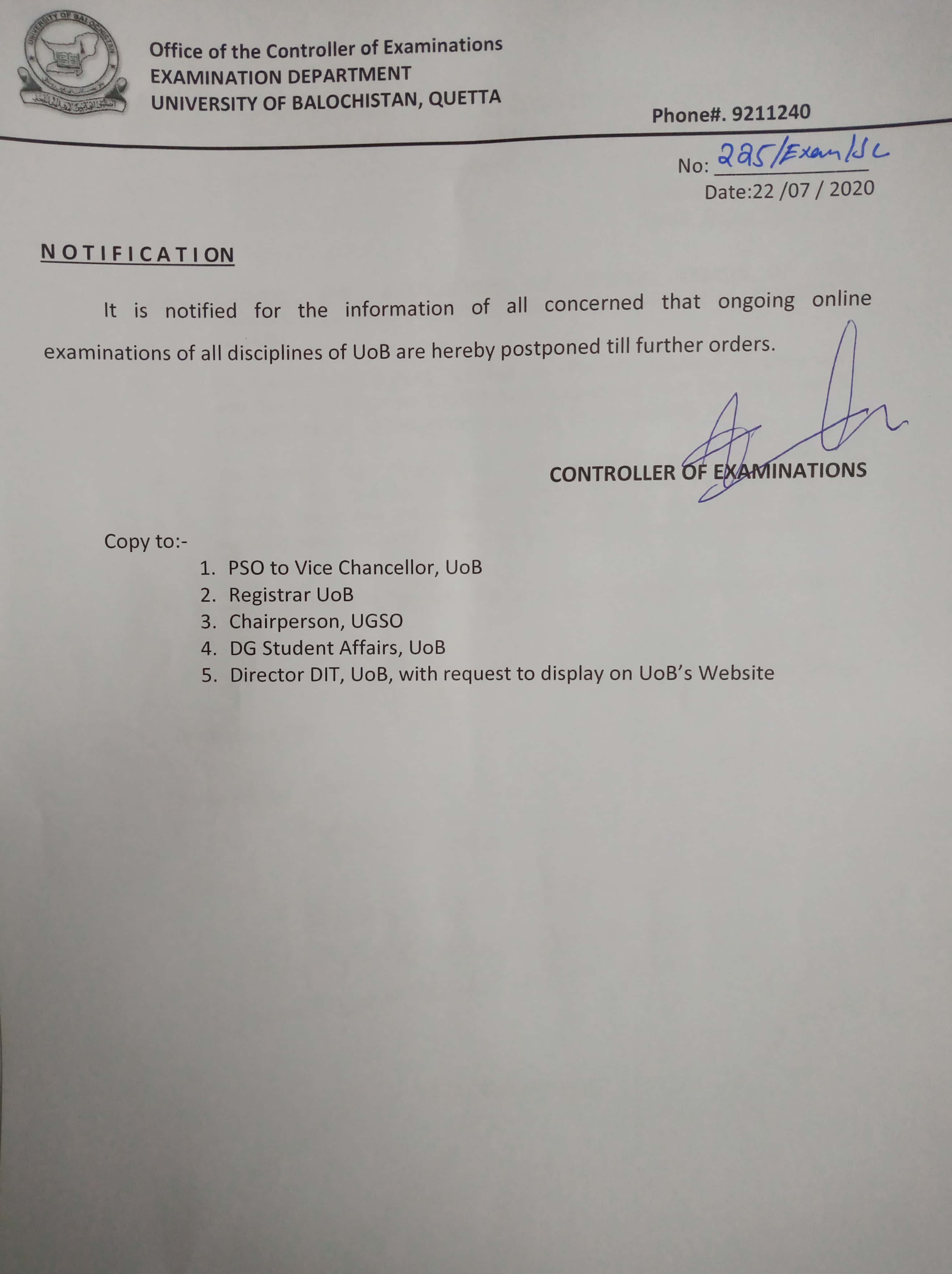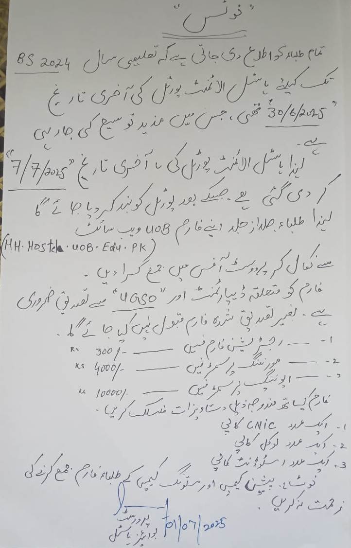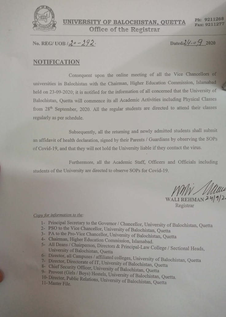 UoB will commence its all All Academic activities including Physical classes ...