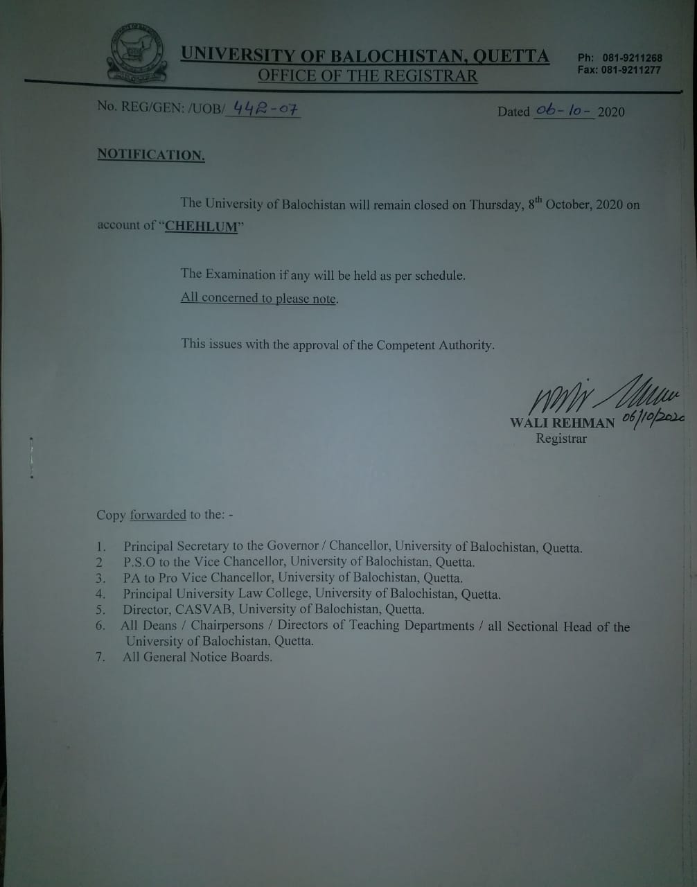 University of Balochistan will remain open on Monday 29-03-2021.jpeg
