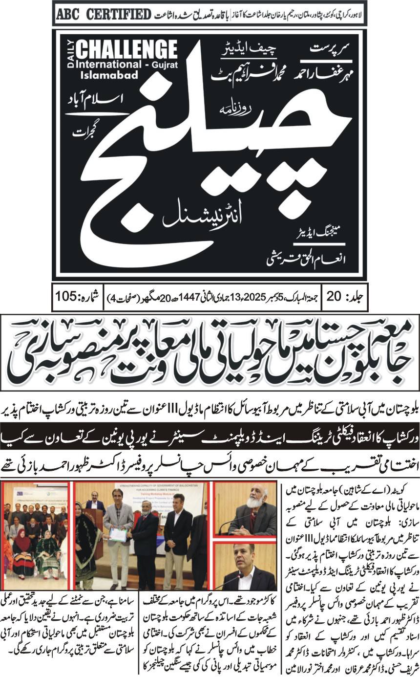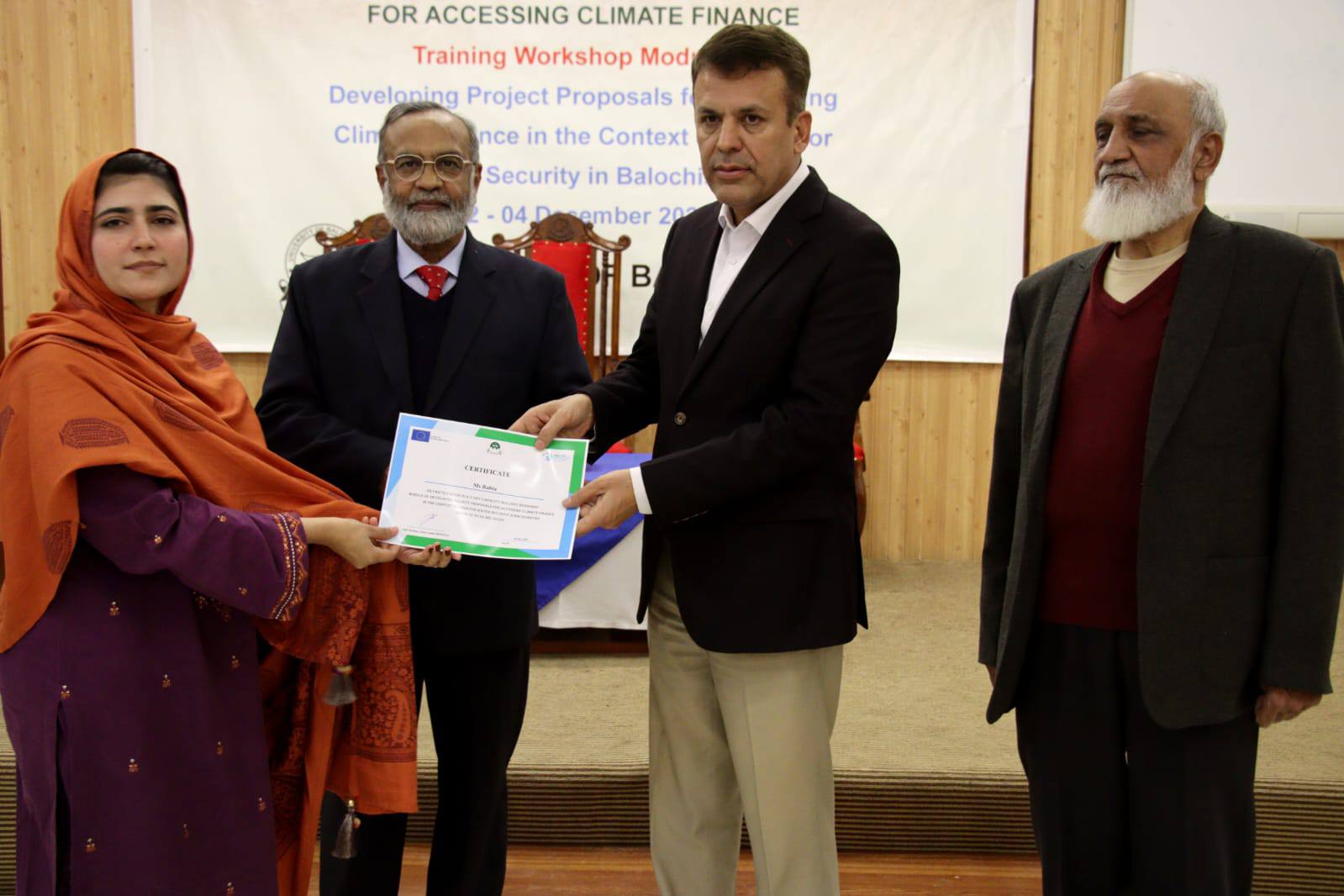 A three-day training workshop on environmental planning and climate finance at the University of Balochistan concluded successfully.