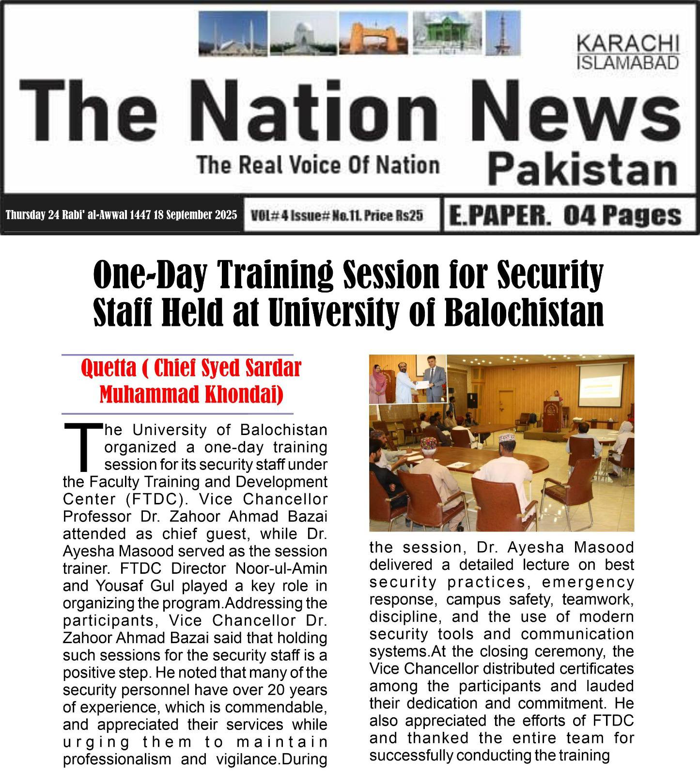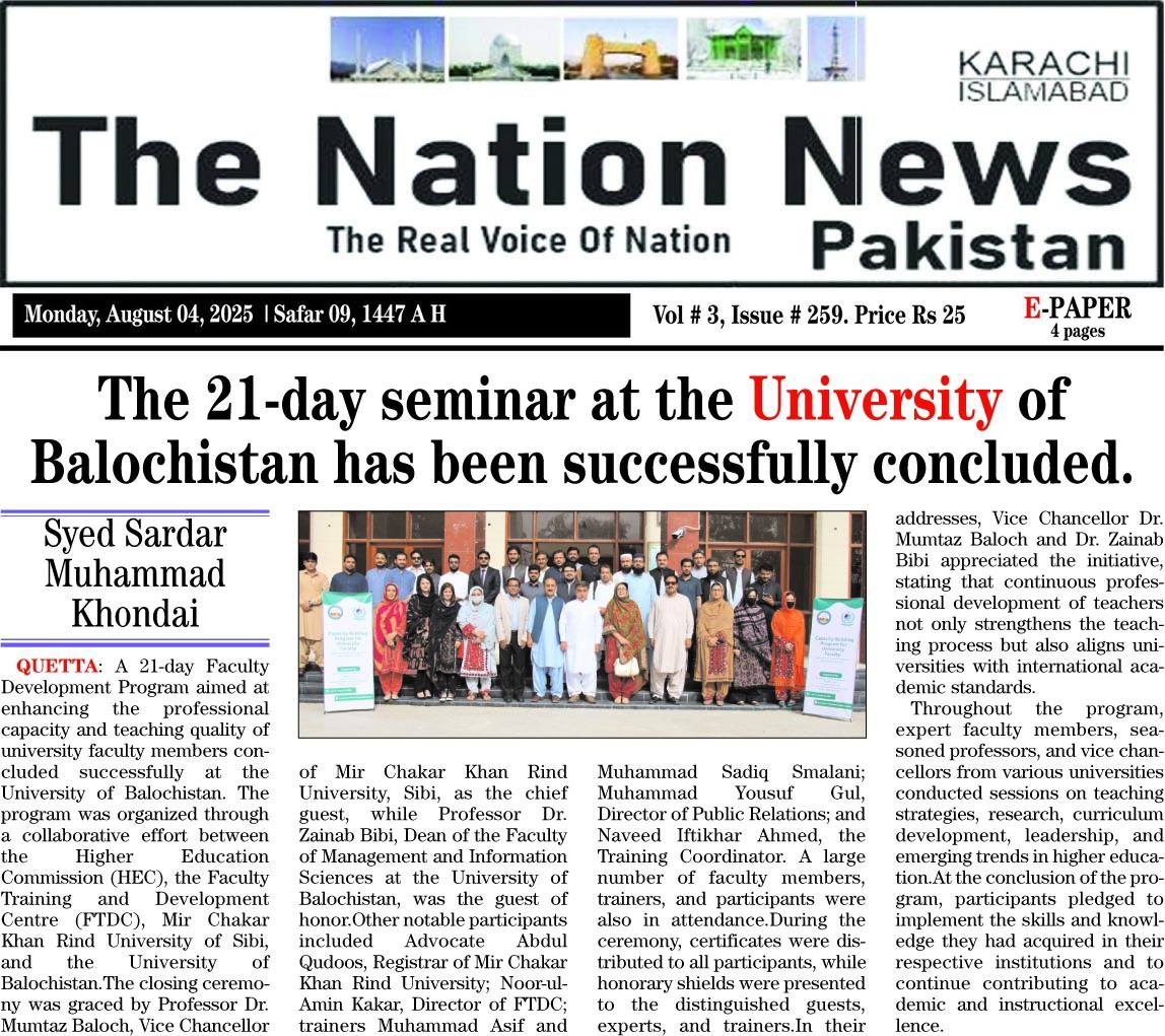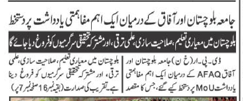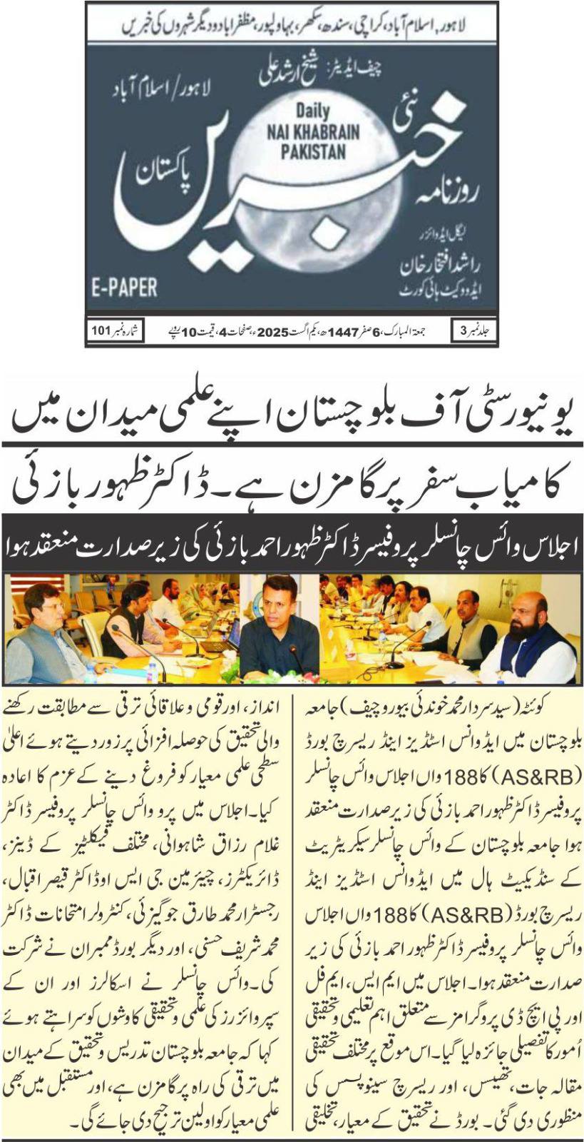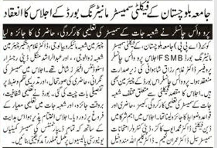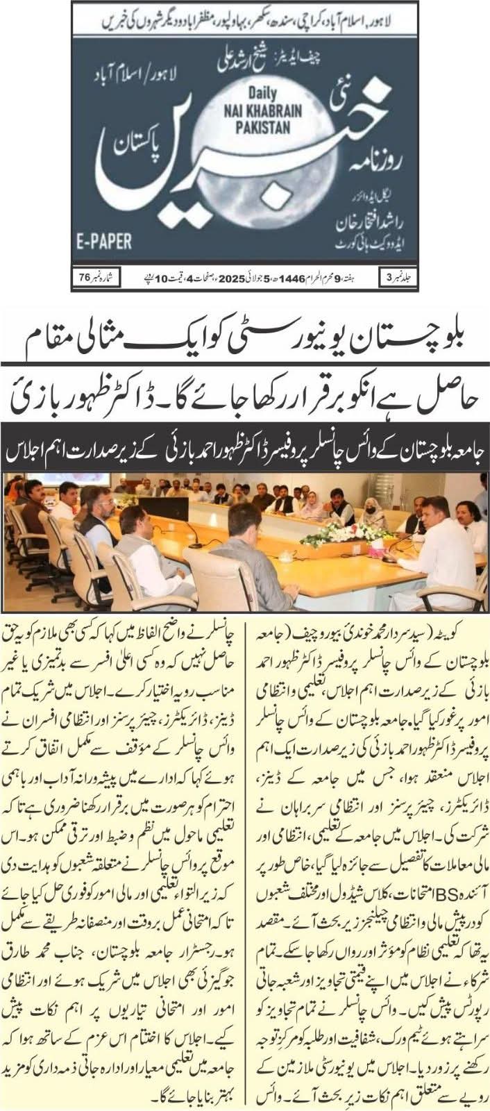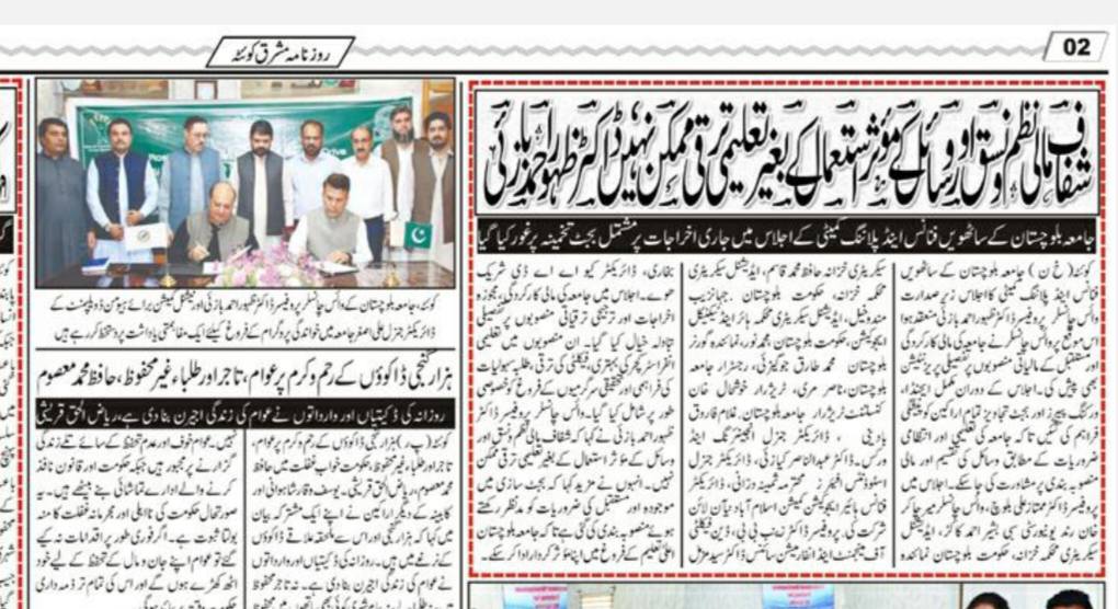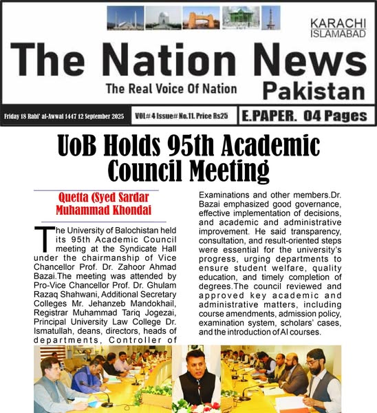 The University of Balochistan continues to receive prominent coverage in print media for its academic achievements, research initiatives, administrative reforms