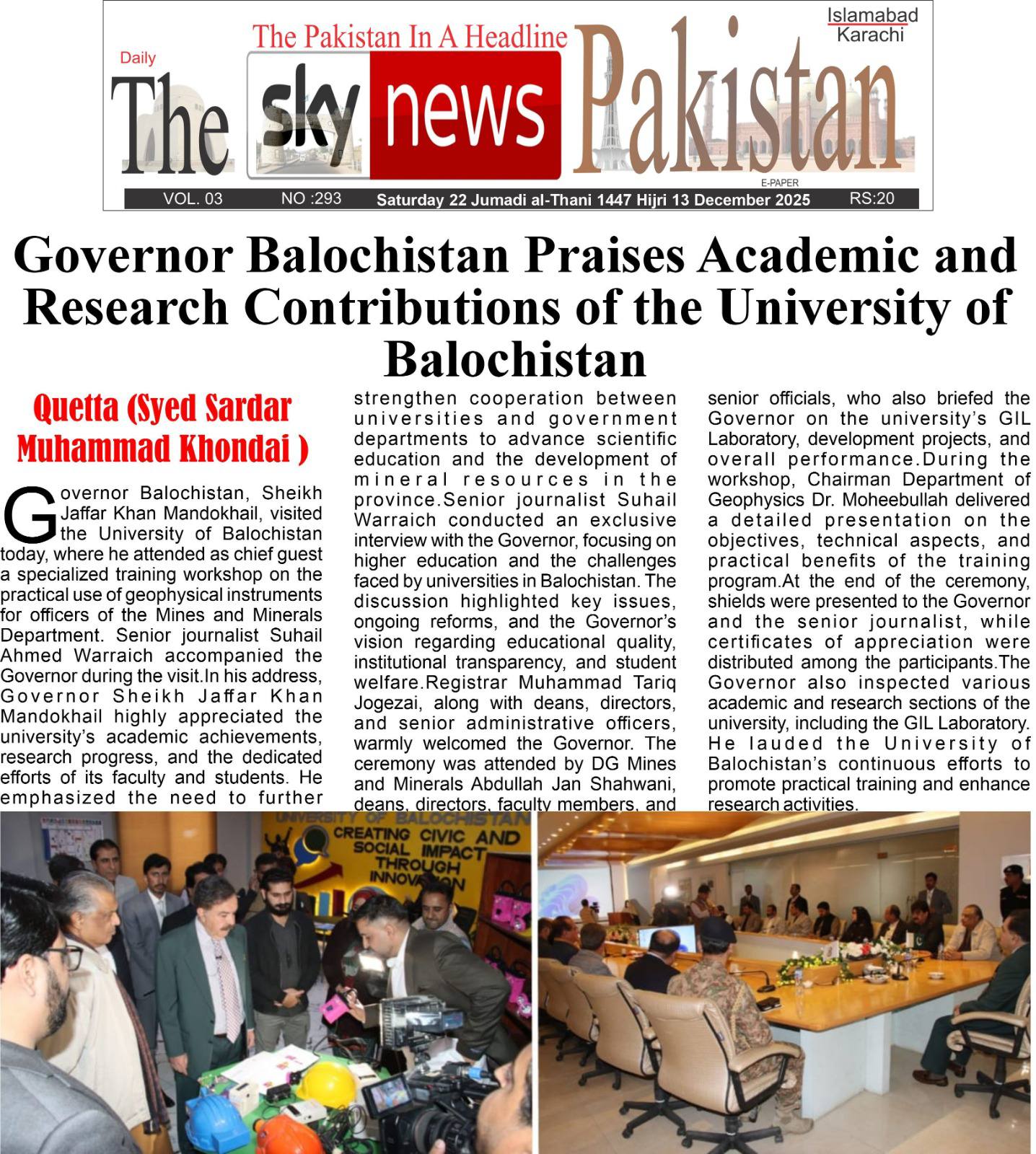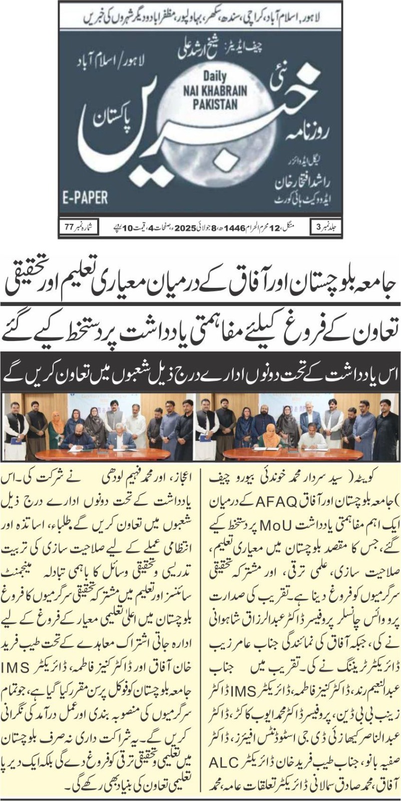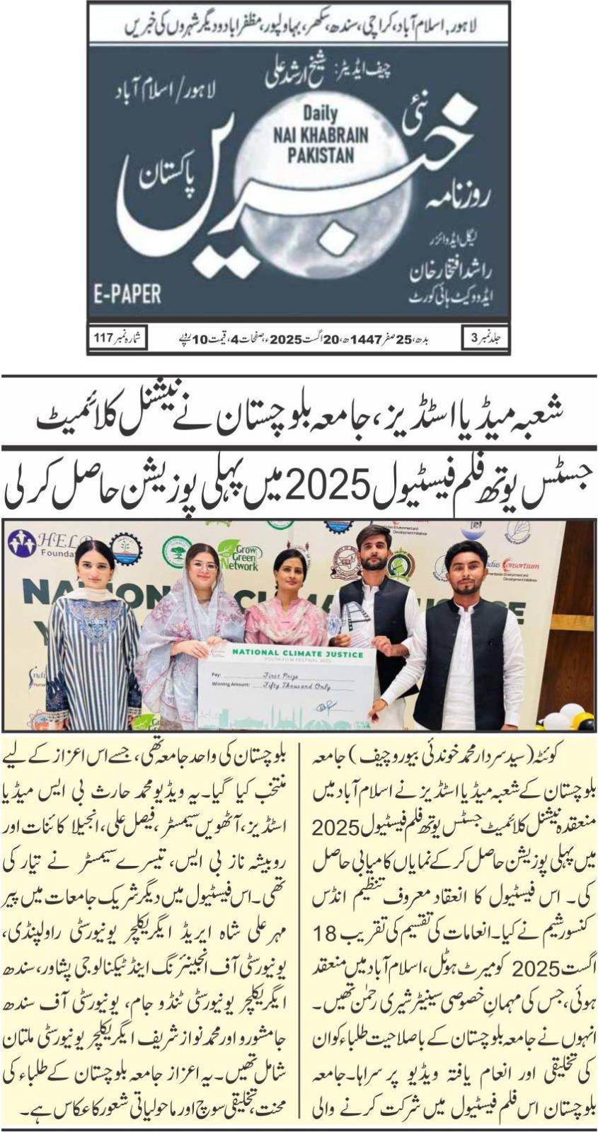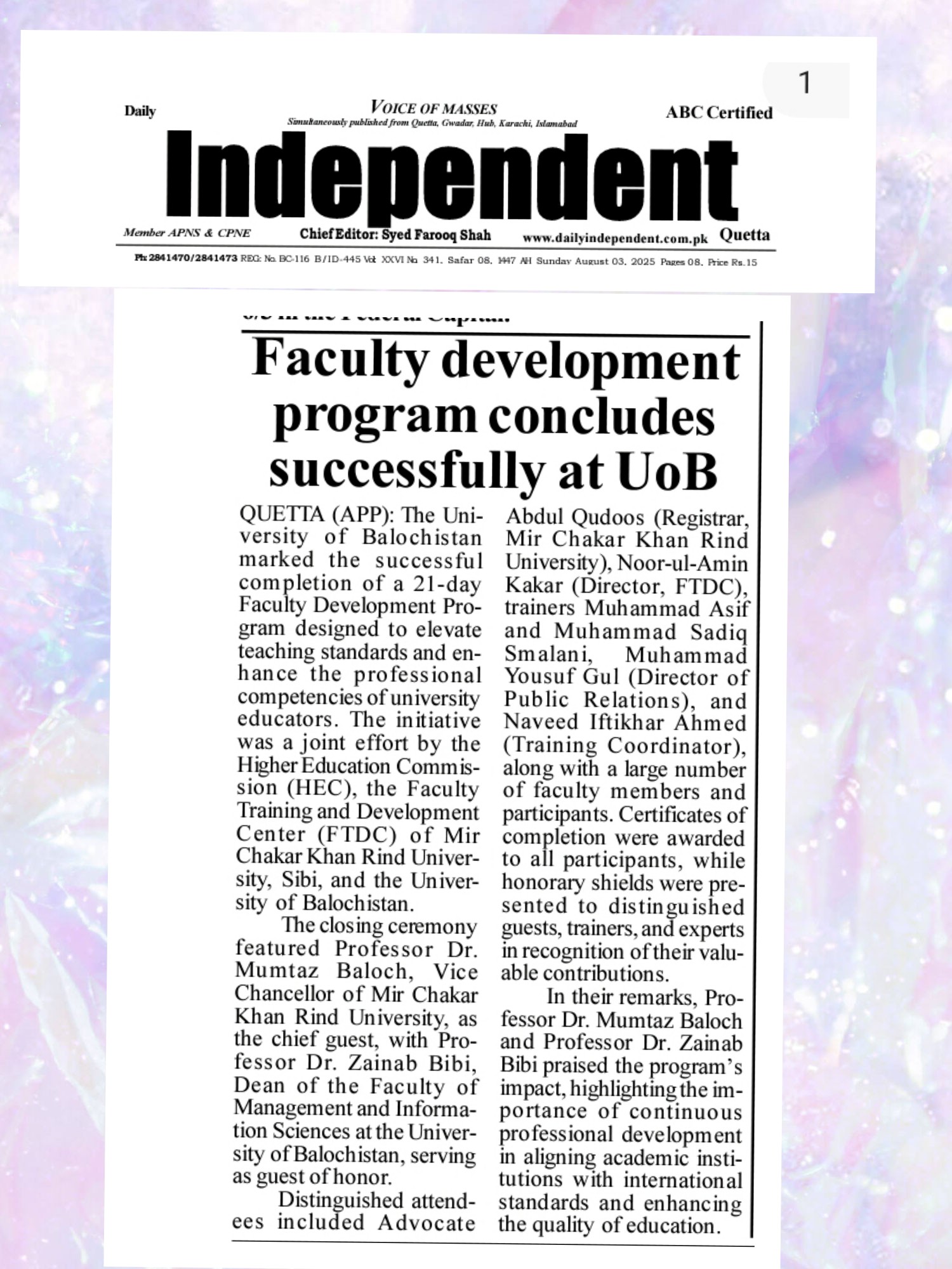 The University of Balochistan continues to receive prominent coverage in print media for its academic achievements, research initiatives, administrative reforms