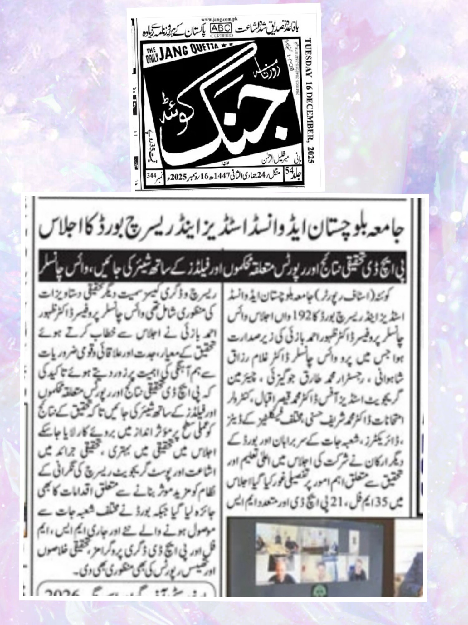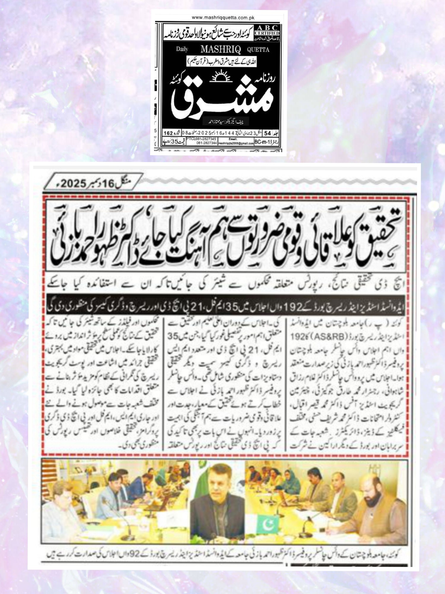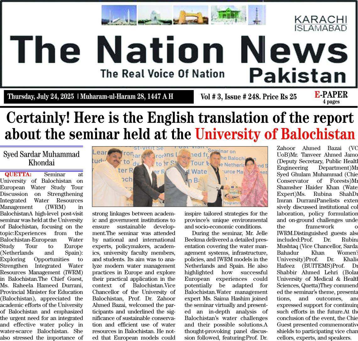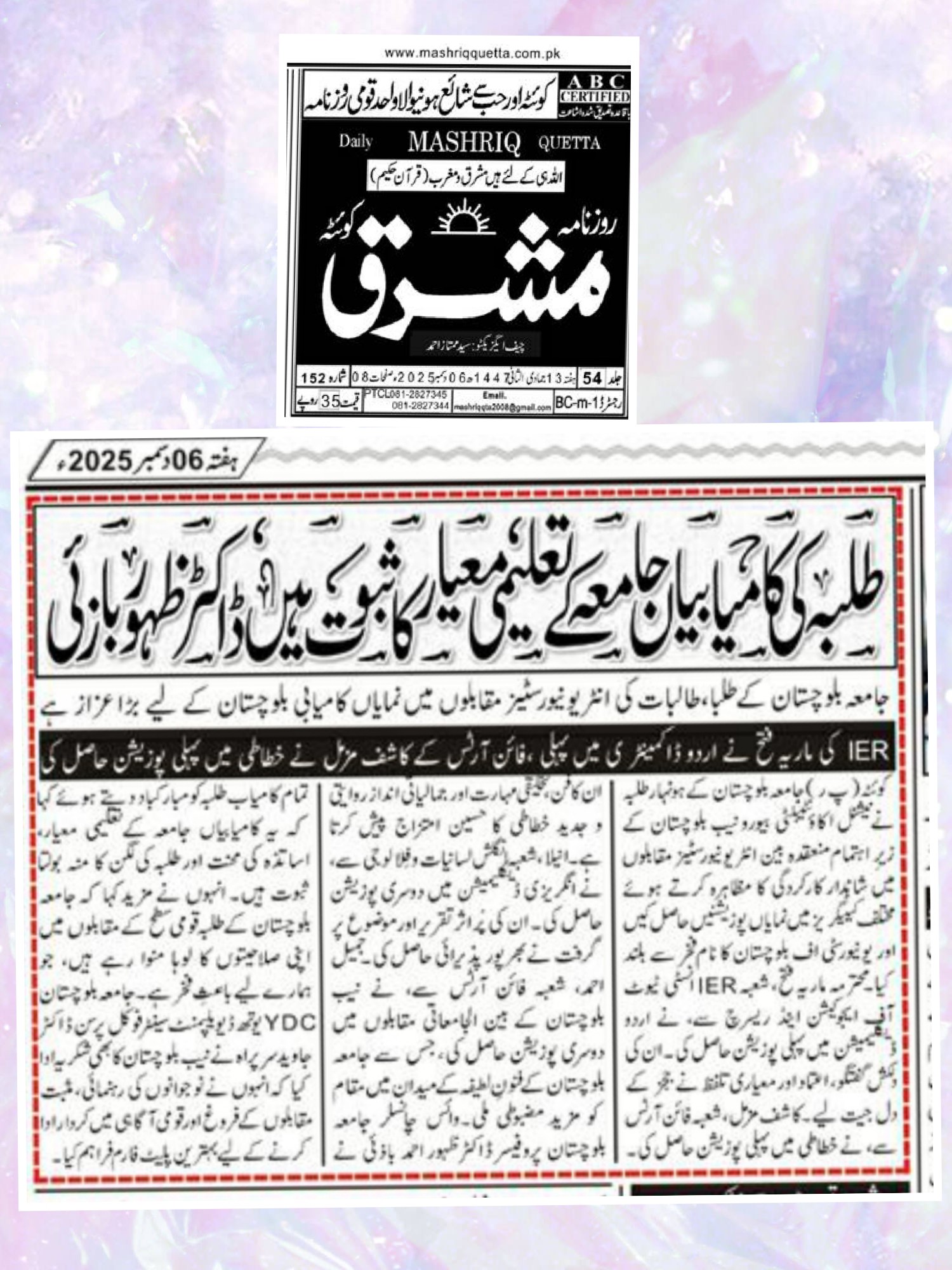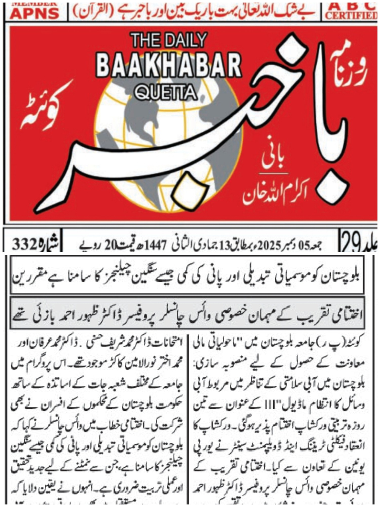 The University of Balochistan continues to receive prominent coverage in print media for its academic achievements, research initiatives, administrative reforms