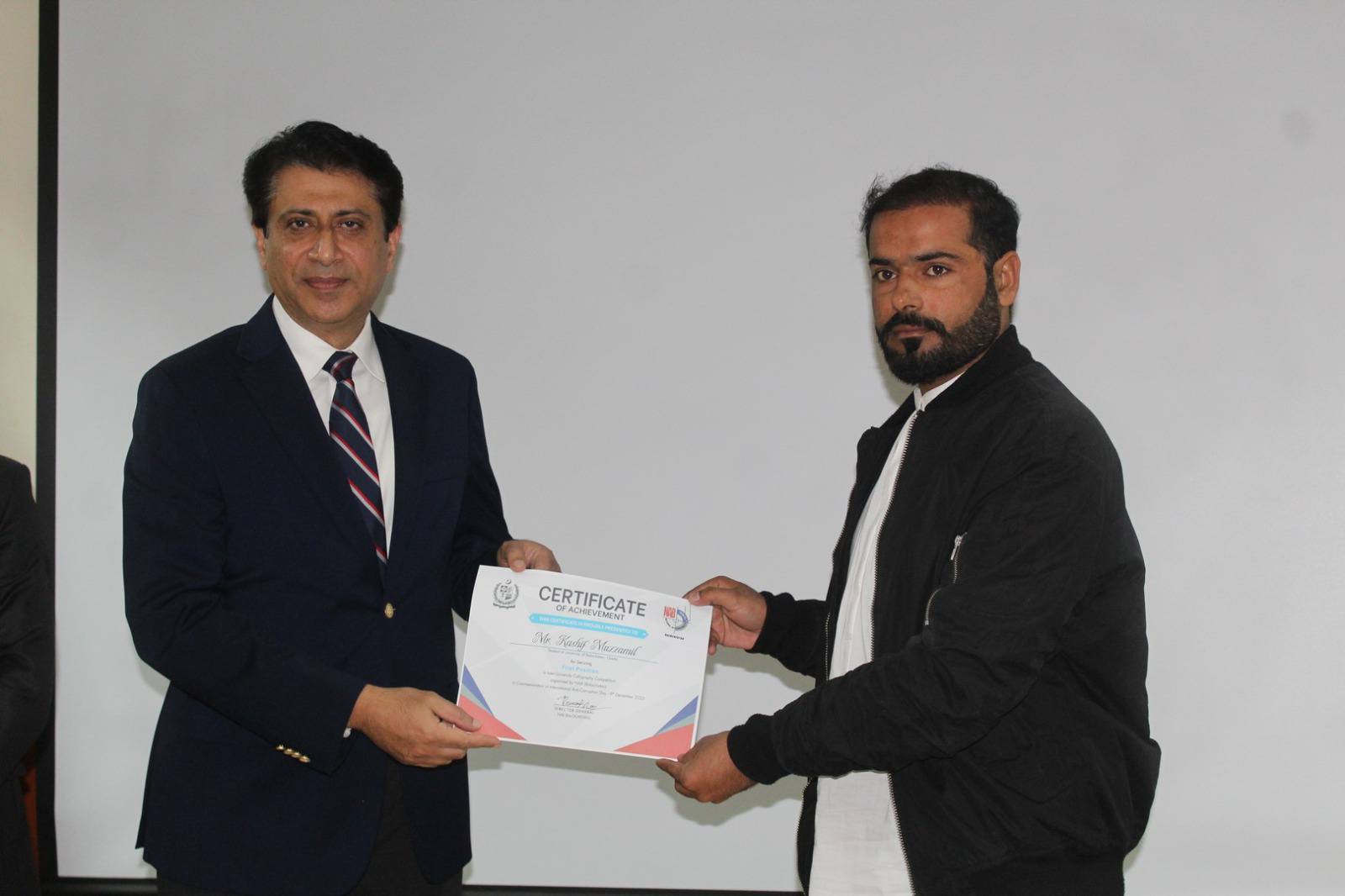 University of Balochistan Vice Chancellor Prof. Dr. Zahoor Ahmed Bazai awarded a shield of appreciation to Aamir Khan, a student of the university, for his outstanding achievement in mountaineering.