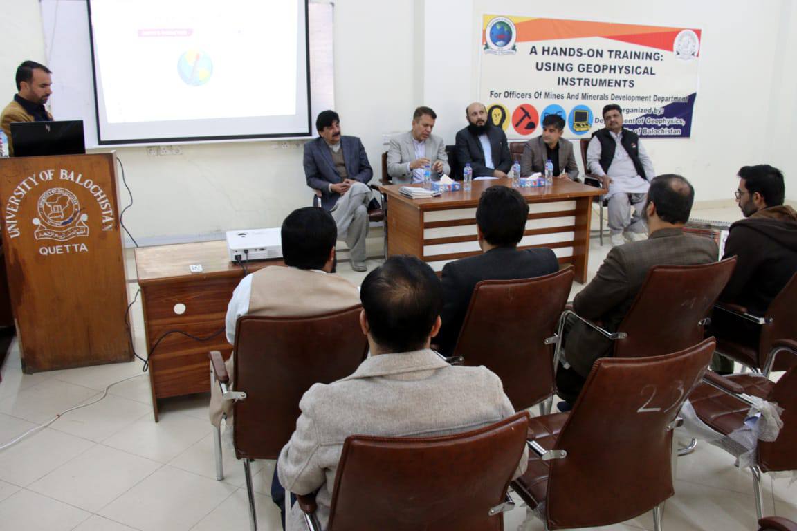 A one-week training workshop for officers of the Mines and Minerals Department on the use of geophysical instruments has begun at the Department of Geophysics, University of Balochistan