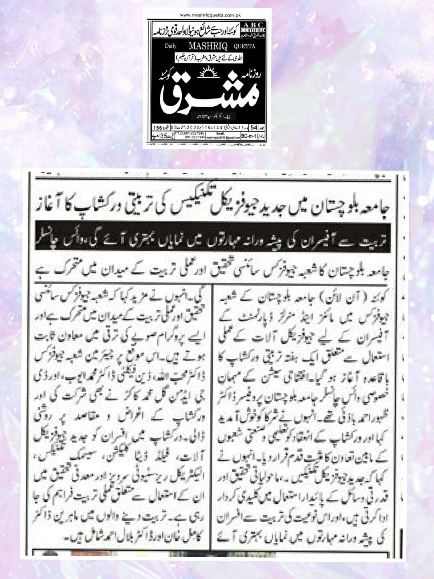 Public Relations Department, University of Balochistan December 4, 2025