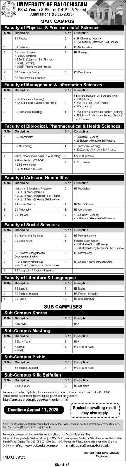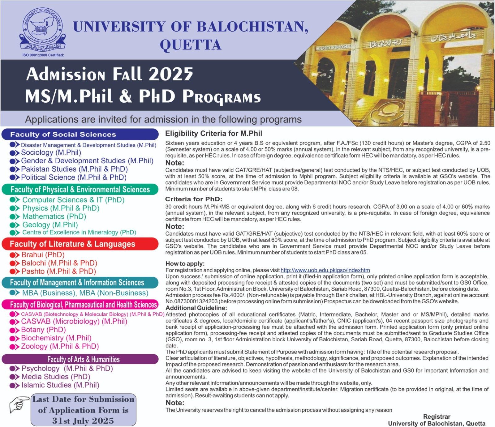 The University of Balochistan remains committed to excellence in higher education, research, and institutional quality, continuing to strengthen its reputation among Pakistan’s leading universities.