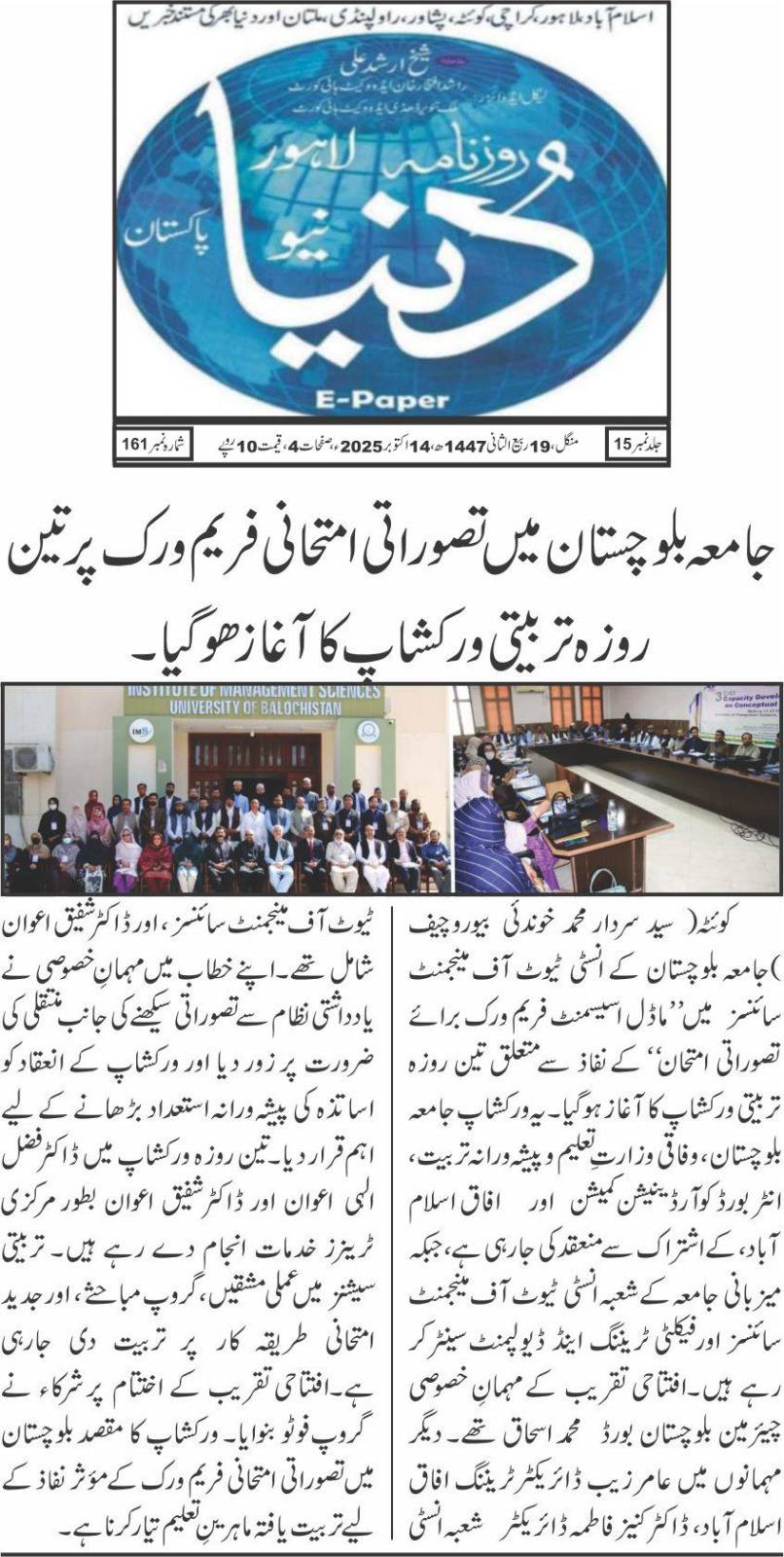 , 23 October 2025 Department of Public Relations DPR, University of Balochistan